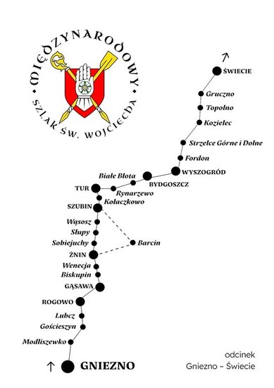 Przebieg Trasy - Szlak rozpoczyna się w Pradze, stolicy Czech, gdzie św. Wojciech pełnił funkcję biskupa. Następnie prowadzi przez kluczowe miejscowości związane z jego działalnością, takie jak: • Czermna • Lewin Kłodzki • Duszniki-Zdrój • Stary Wielisław • Kłodzko • Bardo • Ząbkowice Śląskie • Ziębice • Henryków • Niemcza • Dzierżoniów • Świdnica • Sobótka • Wrocław • Poznań • Gniezno • Bydgoszcz. Ostatecznym celem pielgrzymki jest Gdańsk, gdzie św. Wojciech rozpoczął swoją misję chrystianizacyjną wśród Prusów oraz Święty Gaj, gdzie doszło do męczeńskiej śmierci biskupa. Docelowo planowane jest rozszerzenie szlaku na teren Niemiec, aż do Magdeburga, co łącznie ma stanowić trasę o długości około 1000 km.