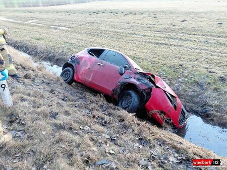 Na miejsce zadysponowano dwa zastępy z Jednostki Ratowniczo-Gaśniczej w Sępólnie Krajeńskim oraz zastęp z Ochotniczej Straży Pożarnej w Więcborku. Na miejscu okazało się, że samochód osobowy marki Lancia zjechał do przydrożnego rowu i dachował. Pojazdem podróżowała 19-letnia kobieta, która po przebadaniu pozostała na miejscu zdarzenia. Na czas działań na drodze wojewódzkiej występowały utrudnienia w ruchu.