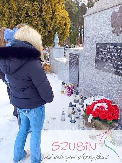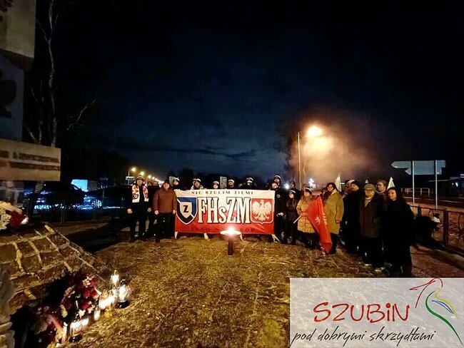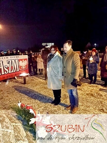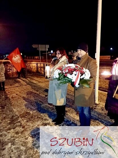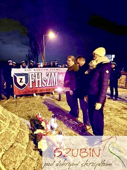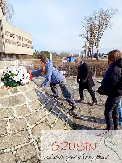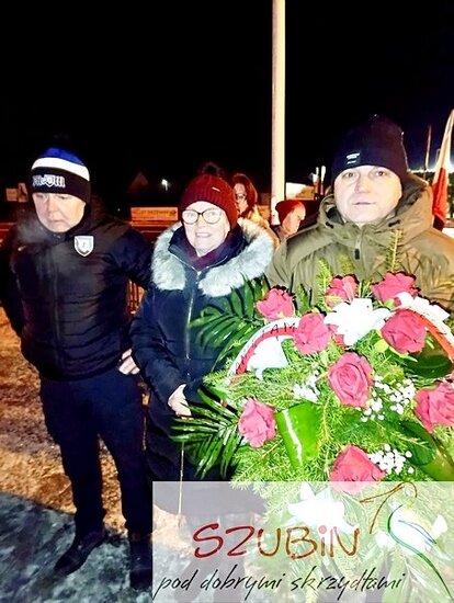 Pod pomnikiem w Zamościu wiązankę i znicze pamięci dla poległych powstańców złożyli Burmistrz Szubina Mariusz Piotrkowski z Zastępcą Anną Kijowską oraz mieszkańcy Zamościa wraz z sołtysem, radnymi oraz przedstawicielami Stowarzyszenia Nasz Zamość i kibicami Zawiszy Bydgoszcz.