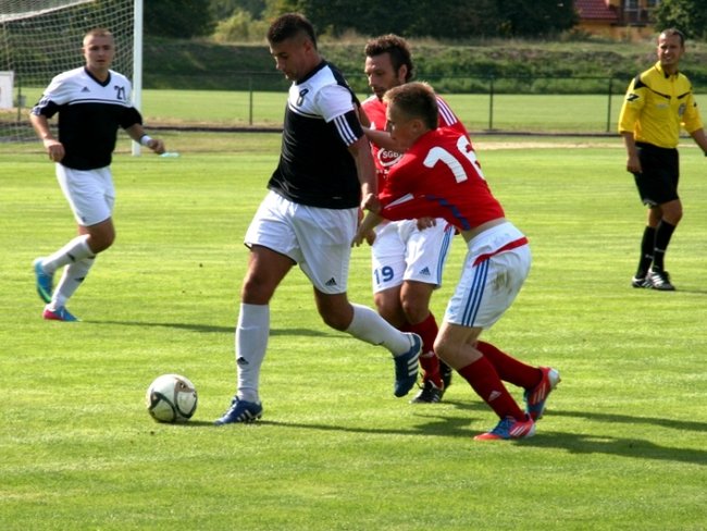 Od początku gospodarze wypracowali sobie minimalną przewagę. Częściej byli przy piłce i częściej atakowali. Bliski szczęścia była Mirosław Obremski, ale uderzył niecelnie. Robert Jurek natomiast trafił w bramkarza. W 37`Sebastian Żurawski fatalnie stracił piłkę w okolicach pola karnego i goście przeprowadzili szybką kontrę. Sam na sam z Kazimierzem Kostkowskim znalazł się Maciej Lewandowski, który posłał piłkę między słupki.