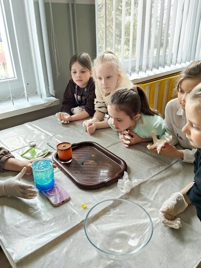 Podczas zajęć dzieci aktywnie uczestniczyły w różnorodnych eksperymentach, które wzbudziły wiele emocji i pozytywnych reakcji. Uczniowie z zaciekawieniem obserwowali, jak zwykłe jajko może zachowywać się w nietypowy sposób, co wywołało wiele zdziwienia i radości. Duże zainteresowanie wzbudziło także tworzenie „śnieżynki w szklance”, które pozwoliło dzieciom zobaczyć proces powstawania kryształków.