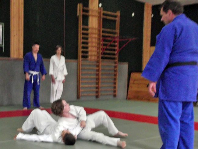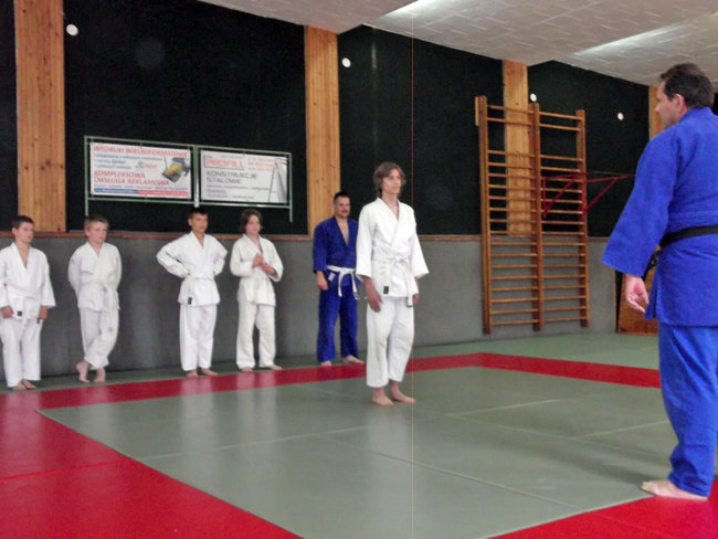 Gościnnie egzamin poprowadził Sławomir Fronczek 3 Dan, jak niektórzy pamiętają dawny trener szubińskich judoków - obecnie trenujący judoków UKJ-10 z Bydgoszczy. Sekcje do egzaminu na 6.,5.,4. i 3. KIU przygotował trener Łukasz Bielun. Z dumą asystował swojemu starszemu wiekiem i stopniem koledze podczas egzaminu, przyglądając i oceniając postępy swoich wychowanków na macie.