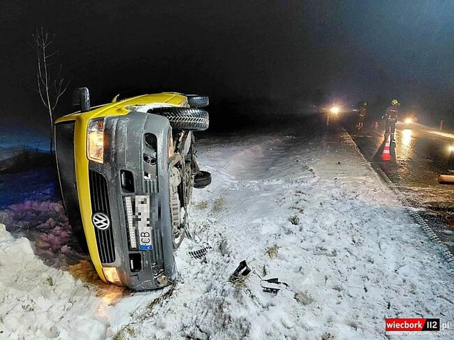 Na miejsce zadysponowano zastęp z Jednostki Ratowniczo-Gaśniczej w Sępólnie Krajeńskim oraz zastęp z Ochotniczej Straży Pożarnej w Więcborku. Na miejscu okazało się, że przed miejscowością Zabartowo od strony Wiela bus marki VW dachował w przydrożnym rowie. Pojazdem podróżował sam kierowca, któremu na szczęście nic się nie stało.