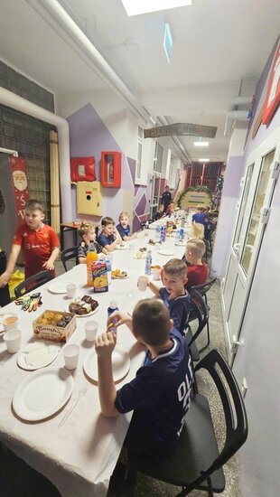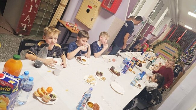 Na początek do gry ruszyli najmłodsi zawodnicy z roczników 2017 oraz 2018, którzy rozegrali mecze wspólnie z rodzicami. Po sportowych emocjach przyszedł czas na poczęstunek – dzieci podzieliły się opłatkiem, złożyły sobie życzenia, a na koniec otrzymały prezenty oraz świąteczne życzenia od swoich trenerów oraz koordynatora akademii Dawida Elwarta.