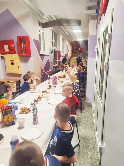 Następnie swoją Wigilię rozpoczęły starsze grupy – rocznik 2010 oraz młodsi wspólnie z rocznikiem 2015. Oni również rozegrali mecze między sobą, a później przeszli do wspólnego dzielenia się opłatkiem, poczęstunku i wręczenia prezentów.