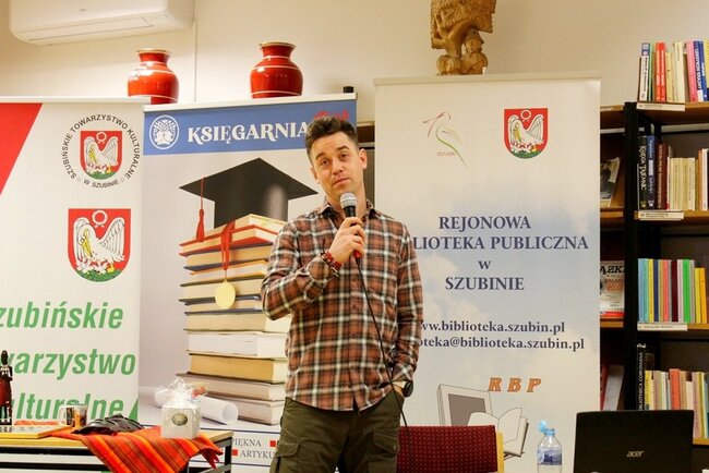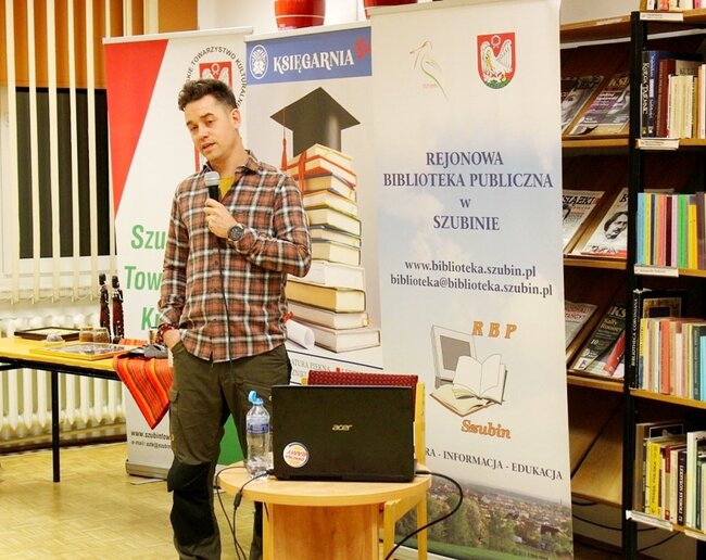 Spotkanie w styczniowy wieczór, było bogate w zdjęcia i krótkie filmiki. Nie musimy chyba dodawać , że czytelnia szubińskiej biblioteki była pełna po brzegi a pytania do autora spotkania nie miały końca. Dziękujemy Szymonie!
