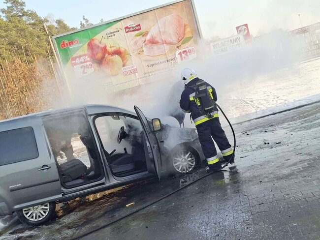 Płonął samochód osobowy. Akcja przy supermarkecie