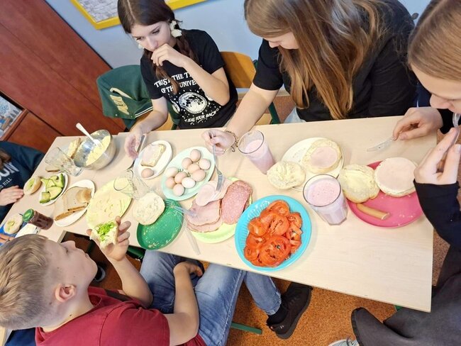 Akcja okazała się wielkim sukcesem, a uśmiechnięte twarze uczniów, którzy z apetytem zajadali się własnoręcznie przygotowanymi przysmakami, były najlepszym dowodem na to, że nauka przez działanie przynosi fantastyczne rezultaty.