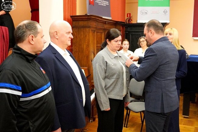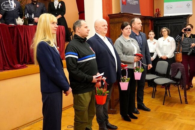 Rocznica zdobycia miasta była znakomitą okazją do wyróżnienia osób, które zasłużyły się w ostatnich latach w upowszechnianiu wiedzy, tradycji i osób związanych z powstańczą insurekcją roku 1918-1919. Medal "Wierni Tradycji" to odznaczenie honorowe ustanowione przez Towarzystwo Pamięci Powstania Wielkopolskiego (TPPW) w celu nagradzania osób i instytucji za wybitne zasługi w upowszechnianiu wiedzy i kultywowaniu pamięci o Powstaniu Wielkopolskim 1918/1919, wręczane za krzewienie historii i wartości związanych z tym zrywem. Medal otrzymali członkowie TPPW w Szubinie Alina i Jacek Paszkiewiczowie oraz Dawid Kłodziński ze Stowarzyszenia Kibiców Lecha Poznań. Medale wręczyli prezes oddziału dr Sławomir Łaniecki i wiceprezes Oddziału Mariola Polańską. Prowadzący poinformował zgromadzonych, że w dniu 8 grudnia 2025 roku w Poznaniu w Pałacu Działyńskich podczas corocznej uroczystości wręczenia nagród honorowych ZG TPPW 1918-1919 „Dobosz Powstania Wielkopolskiego” złoty medal „Wierni Tradycji” z rak prezesa ZG naszego Towarzystwa odebrała pani dr Kamila Czechowska – kustosz i dyrektor Muzeum Ziemi Szubińskiej im. Zenona Erdmanna w Szubinie, a medal srebrny pani Agnieszka Tulińska – dyrektor Szkoły Podstawowej im. Powstańców Wielkopolskich w Rynarzewie.