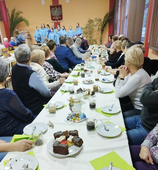 Atrakcja w czasie uroczystości był występ zespołu wokalnego Schola Getsemani, która pod przewodnictwem Pani Agnieszki Berka zaśpiewał piękne polskie kolędy. Popołudnie przy kawie upłynęło w miłej i wesołej atmosferze, rozmowom nie było końca. Zaproszeni goście otrzymali drobne upominki. Organizatorami spotkania byli: P. Sylwia Klim Sołtyska i kierowniczka biblioteki w jednej osobie oraz Rada Sołecka, i Świetlica Wiejska.