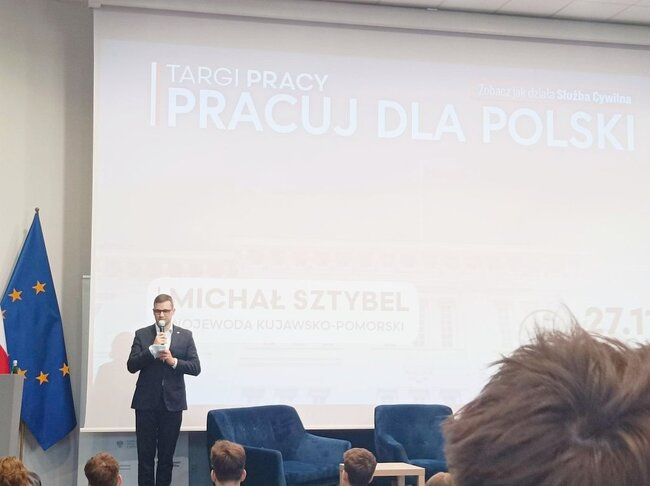 W dniu 27 listopada, uczniowie klas# 2TL i 2 OPW z Zespołu Szkół im. prof. Emila Chroboczka, na zaproszenie Wojewody Kujawsko-Pomorskiego, uczestniczyli w Targach Pracy „Pracuj dla Polski”, zorganizowanych w Kujawsko-Pomorskim Urzędzie Wojewódzkim w Bydgoszczy. Wydarzenie to było lekcją edukacji obywatelskiej i wyjątkową okazją do poznania szerokich perspektyw zawodowych w administracji rządowej oraz służbach, współpracujących z urzędem wojewódzkim.