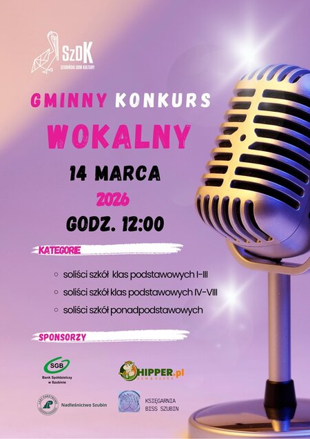 Wydarzenie skierowane jest do dzieci i młodzieży zamieszkującej lub uczącej się w obszarze Gminy Szubin. Gminny Konkurs Wokalny 2026 to kolejna odsłona wydarzenia, które po raz pierwszy odbyło się w 2022 roku.