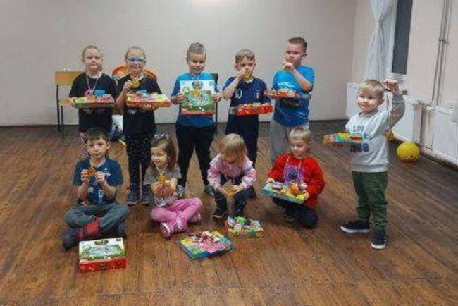 Każde dziecko otrzymało nagrodę za udział, co sprawiło wiele radości i uśmiechu. Panie z Koła Gospodyń Wiejskich przygotowały pyszny poczęstunek w postaci gofrów i frytek, który cieszył się dużym zainteresowaniem. Piątkowe popołudnie wszyscy spędzili w miłej i wesołej atmosferze, integrując się i wspólnie dobrze się bawiąc.