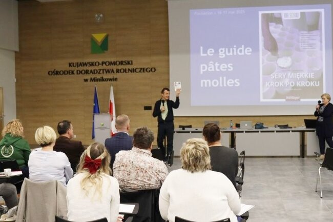Pierwszym punktem programu była prezentacja najnowszego poradnika dla serowarów – „SERY MIĘKKIE KROK PO KROKU”. Tą część poprowadził Arnaud Sperat-Czar. Publikacja stanowi kompleksowy przewodnik po etapach produkcji serów miękkich – od selekcji surowców, przez procesy technologiczne, aż po przechowywanie i sprzedaż.