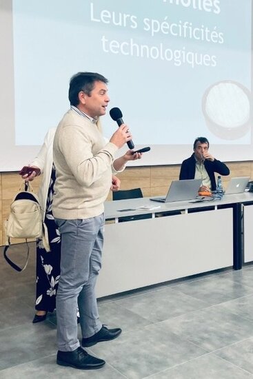 Następnie głos zabrał Sébastien Roustel, autor wspomnianego poradnika i uznany ekspert w dziedzinie serowarstwa. W swoim wystąpieniu skupił się na specyfice produkcji serów miękkich, zwłaszcza na konieczności jednoczesnej regulacji procesu ukwaszania i odsączania masy serowej. Omówił również najczęstsze wady serów miękkich. Wskazał ich przyczyny, pierwsze sygnały ostrzegawcze oraz możliwe środki zaradcze. Prezentacja spotkała się z dużym zainteresowaniem uczestników, którzy chętnie zadawali pytania i dzielili się swoimi doświadczeniami.