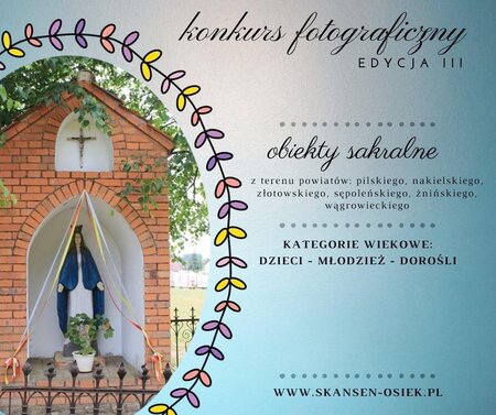 Muzeum Kultury Ludowej #w Osieku nad Notecią - oddział Muzeum Okręgowego w Pile ogłasza konkurs fotograficzny: „Obrazki z mojej rodzinnej wsi. Tradycja i współczesność. Edycja III - Obiekty sakralne”.
