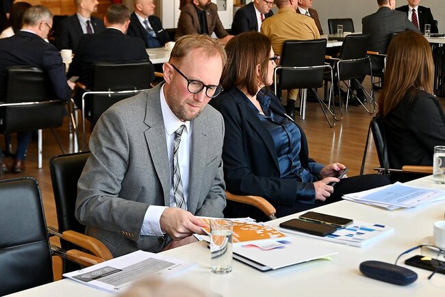 Po otwarciu spotkania oraz przedstawieniu i zatwierdzeniu porządku wtorkowego posiedzenia głos zabrali zaproszeni goście: wojewoda kujawsko-pomorski Michał Sztybel oraz członek zarządu województwa kujawsko-pomorskiego Dariusz Kurzawa.