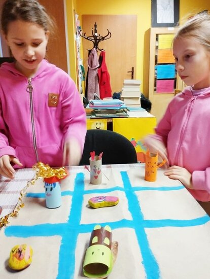 Z kartonowych rolek z recyklingu wykonywaliśmy fantastyczne postacie. Najmłodsi prowadzili turnieje popularnych gier jak „kółko i krzyżyk” oraz innych planszówek. Podczas zajęć miały też kontakt z dobrą literaturą dla dzieci. Wspólnie realizowaliśmy sporo ciekawych pomysłów. Najmłodsi dali nam radość, uśmiech i dobrą energię.