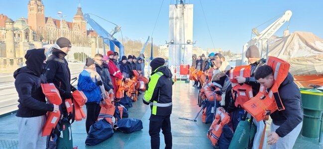 2 lutego 2026 roku uczniowie# klas IV i V Technikum nr 2 w Zespole Szkół Żeglugi Śródlądowej im. kmdr. Bolesława Romanowskiego w Nakle nad Notecią kształcącego w zawodzie technik żeglugi śródlądowej zostali zamustrowani na statek Politechniki Morskiej „Nawigator XXI”. Zostali przydzieleni do poszczególnych wacht i rozpoczęli praktykę zawodową.