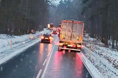 (czytaj więcej)Unikaj tego odcinka drogi. Ciężarówki utknęły w miejscu
