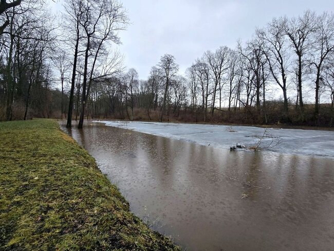Ogromny zrzut wody w krótkim czasie zalał staw oraz sporą część parku. W niektórych miejscach woda zrównała się z poziomem grobli.
