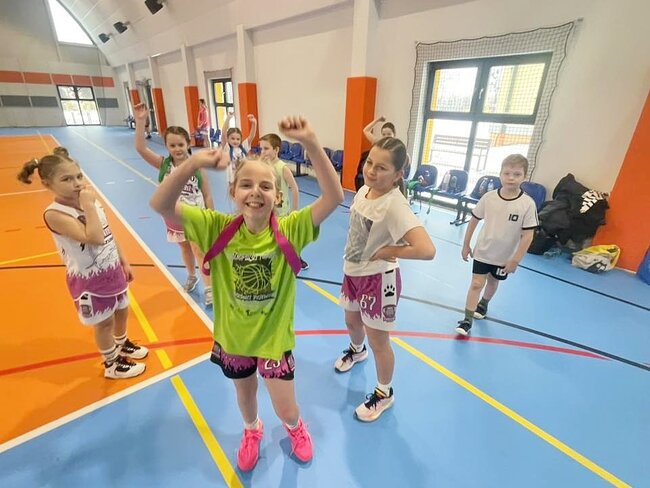Codziennie nasi mali podopieczni trenują gry i zabawy pokrewne koszykówce, a najstarsza grupa ma już za sobą 5 pełnych treningów koszykarskich.