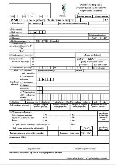 - Wniosek o ocenę polową plantacji nasiennej.