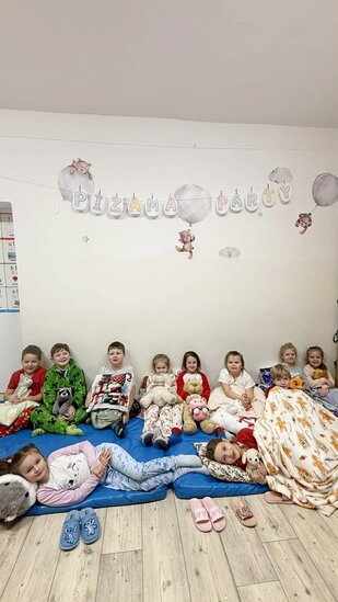 13 stycznia uczniowie# klasy 0 ze Szkoły Podstawowej im. Jana Pawła II w Kowalewie wzięli udział w wyjątkowej zabawie – „Piżama Party”. Po zakończonych zajęciach dzieci wróciły do domów, aby późnym popołudniem ponownie spotkać się w szkolnej sali, tym razem w piżamkach, z kocami, poduszkami i ulubionymi przytulankami.