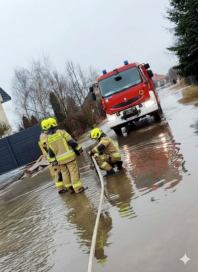 - Odpompowywanie wody z zalanego terenu. Działania na dwóch ulicach