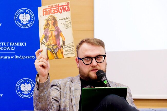 Rozmowę poprowadzili Jarosław Jakubowski i Mateusz Szłapka z Delegatury IPN w Bydgoszczy. Dyskusja dotyczyła korzeni polskiej literatury fantastyczno-naukowej, jej dynamicznego rozwoju w latach 70., powstawania klubów miłośników fantastyki oraz kulis narodzin miesięcznika „Fantastyka” w 1982 r.