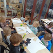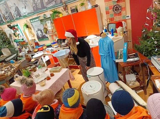 Po twórczej części zajęć na dzieci czekała kolejna atrakcja – zwiedzanie wystawy „Kuchnia PRL-u”. Przedszkolaki mogły zobaczyć charakterystyczne dla tamtych czasów wyposażenie kuchni, takie jak naczynia, sprzęty, meble. Dzięki temu maluchy poznały realia życia codziennego w minionej epoce oraz dowiedziały się, jak wyglądało przygotowywanie posiłków w czasach ich dziadków. Wystawa wzbudziła wiele ciekawości i pytań, a niektóre eksponaty wywołały wśród dzieci prawdziwy zachwyt.