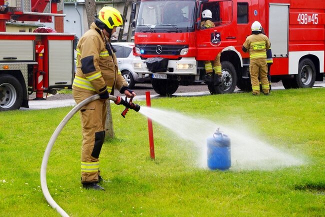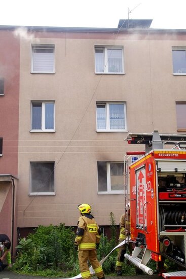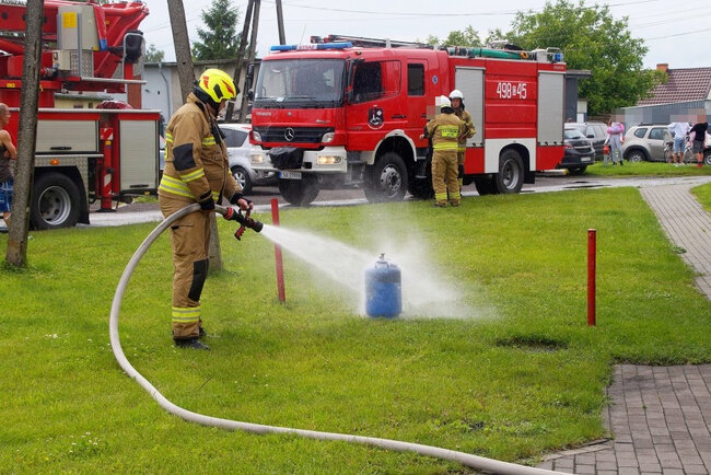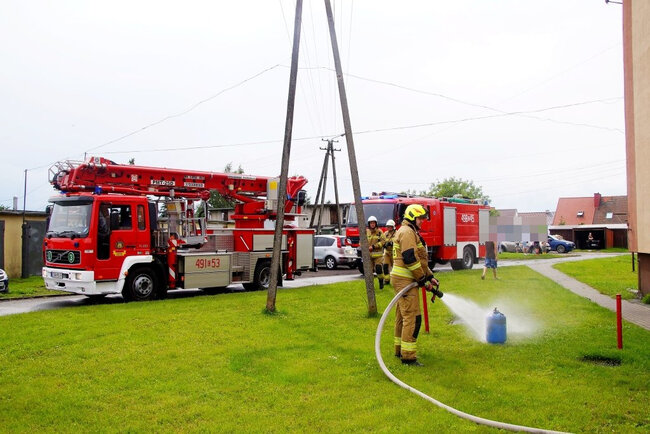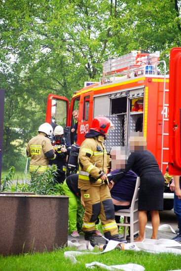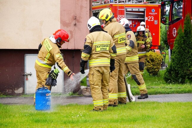 Z budynku strażacy wynieśli butlę z gazem i zaczęli ją intensywnie ochładzać na zewnątrz, by zapobiec przegrzaniu i możliwej eksplozji. W pożarze ucierpiała jedna osoba. Kobieta w starszym wieku z poparzeniami twarzy i rąk została przetransportowana do szpitala. - Poszkodowanej udzielona została pierwsza pomoc przedmedyczna. Została ona przekazana zespołowi ratownictwa medycznego. Kobieta wymagała hospitalizacji - poinformował st. kpt. Walkowiak.