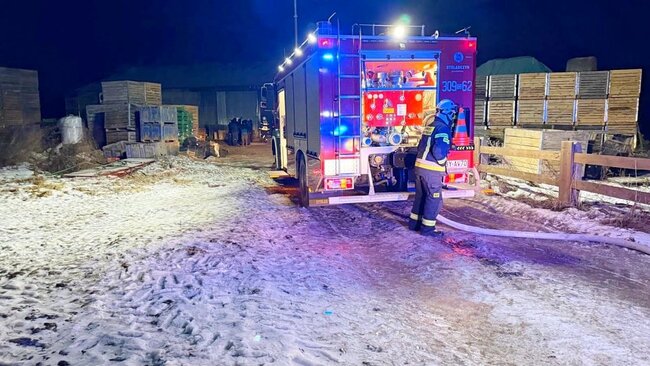 Pożar w gospodarstwie rolnym. Akcję utrudniało oblodzenie