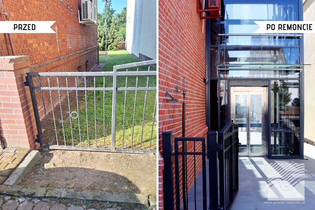 W ramach prac zrealizowano również kluczowy projekt: „Rozbudowa o windę budynku Starostwa Powiatowego w Nakle nad Notecią”. Montaż windy pozwolił na pełne otwarcie urzędu dla osób z niepełnosprawnościami oraz seniorów, likwidując dotychczasowe bariery architektoniczne.