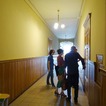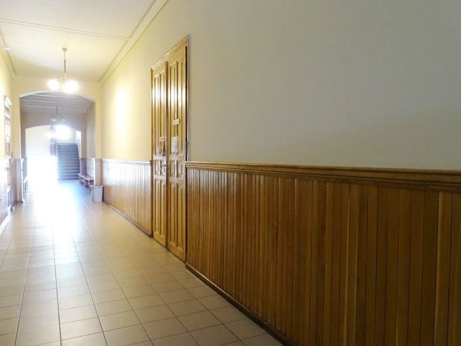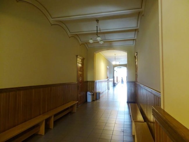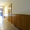 Zadanie przewidywało poprawę stanu technicznego i estetycznego korytarzy. W związku z tym zostały usunięte warstwy wtórne, wykonano wzmocnienia strukturalne oryginalnych tynków oraz uzupełnienie ubytków. Obramienia i naczółki wszystkich drzwi zrekonstruowano na wzór oryginalnych, zachowanych w jednym z pomieszczeń. Ponadto obniżono wysokość boazerii i wykończono profilowaną listwą dębową w kolorze ustalonym dla całej stolarki drewnianej.