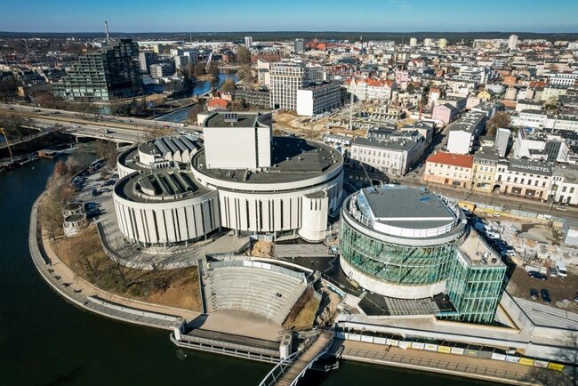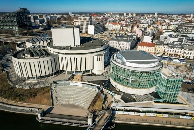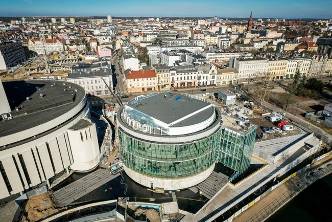 W nowym czterokondygnacyjnym skrzydle kompleksu – tak zwanym czwartym kręgu – oprócz operowej sali kameralnej (z fosą orkiestrową dla siedemdziesięcioosobowego zespołu i widownią na 500 osób), znajdą się przestrzeń wystawiennicza i sala kinowa. Rotunda z tarasem widokowym od strony Brdy, w której trwają obecnie prace wykończeniowe i instalacyjne, ma 6 tys. metrów kwadratowych i kubaturę 40 tys. metrów sześciennych. Powstający jednocześnie bardzo potrzebny w tym miejscu dwupoziomowy podziemny parking – ma być gotowy w połowie tego roku - będzie miał 212 stanowisk postojowych. Wartość inwestycji to ponad 190 mln złotych.