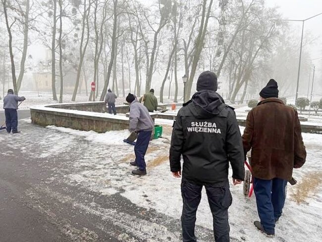 Skazani zatrudnieni na rzecz potulickiej jednostki penitencjarnej w systemie bez konwojenta w grupie utrzymującej porządek na terenie Potulic, pod nadzorem funkcjonariuszy Służby Więziennej, wzięli udział w działaniach porządkowych, odśnieżając chodniki w newralgicznych miejscach.