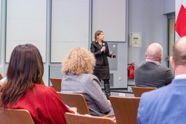 Podczas spotkania eksperci Krajowy Zasób Nieruchomości (KZN) oraz Szkolenia - Instytut Rozwoju Miast i Regionów (IRMiR) przedstawili szczegóły projektu „Ośrodek Rozwoju Najmu Społecznego”, finansowanego z Funduszy Europejskich dla Rozwoju Społecznego (FERS):