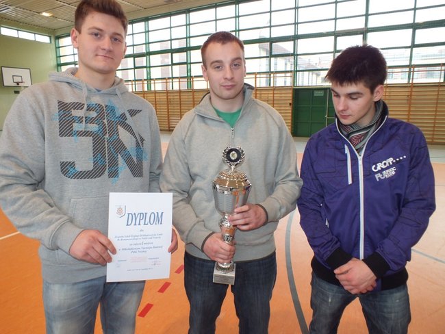 Trzy najlepsze zespoły otrzymały puchary i dyplomy. Nagrody wręczał dyrektor ZSŻŚ w Nakle Rafał Woźniak.