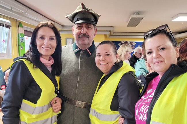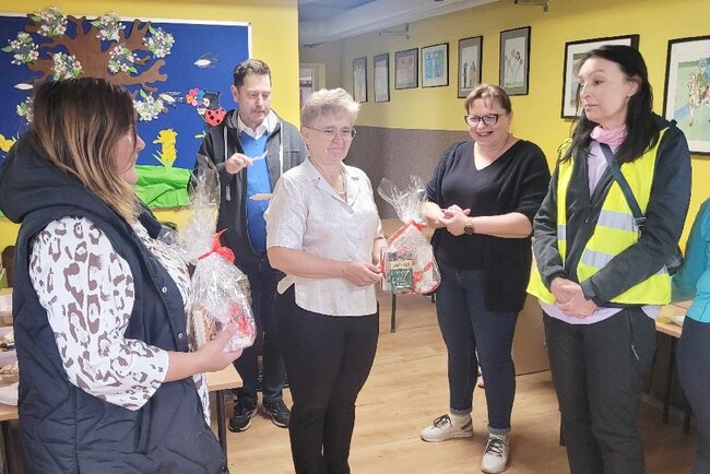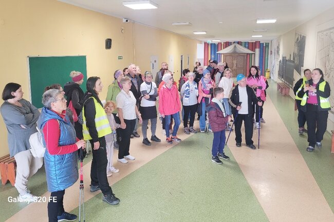 Następnie ponad 70 osobowa grupa osób, bez strat i w różnym wieku, dotarła do Szkoły Podstawowej im. Powstańców Wielkopolskich w Rynarzewie. Tam zostali powitani przez burmistrza Szubina Mariusza Piotrkowskiego i przewodniczącą Rady Miejskiej Annę Kijowską, dyrektor szkoły Agnieszkę Tulińską i wicedyrektor Agnieszkę Kamyszek oraz sołtys Agatę Sitterlee. Po wykonaniu pamiątkowego zdjęcia przy muralu powstańczym, który widnieje na ścianie szczytowej budynku, grupa została ugoszczona w murach szkoły. Gościnę zapewniła Szkoła Podstawowa w Rynarzewie i Koło Gospodyń Wiejskich w Rynarzewie wraz z Sołectwem Rynarzewo - organizatorzy składają serdeczne podziękowanie za miłe przyjęcie w Rynarzewie. Po poczęstunku uczestnicy mogli poznać szkołę, a szczególnie izbę patrona, którą opiekuje się regionalista Piotr Adamczewski. Przewodnikiem podczas zwiedzania szkoły była dyrektor Agnieszka Tulińska. Dyrektor z dumą prezentowała wystawy i murale wewnątrz placówki, które związane są z powstaniem wielkopolskim. Bezpośrednią organizacją marszu zajmowali się przedstawiciele towarzystwa i muzeum - Kamila Czechowska, Patrycja Banasiak i Iwona Kruk. Po kilku godzinach marszu i wizycie w Rynarzewie uczestnicy marszu odjechali do Szubina.