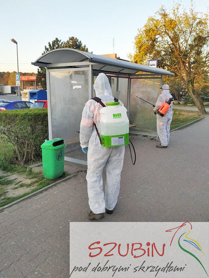 Prowadzona jest również dezynfekcja miejsc publicznych na terenie całej gminy Szubin. Odkażanie przeprowadzają pracownicy Urzędu Miejskiego w Szubinie, przy użyciu profesjonalnego sprzętu technicznego zakupionego na ten cel.