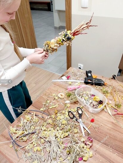 Podczas spotkania wykonywali tradycyjne ozdoby z naturalnych materiałów, takich jak suszone trawy, kwiaty. Praca nad palmami była nie tylko okazją do rozwijania zdolności manualnych, ale także do poznania wielkanocnych zwyczajów i tradycji. Powstałe prace zachwycały pomysłowością, starannością wykonania oraz bogactwem barw. Zajęcia przebiegały w miłej i twórczej atmosferze, sprzyjającej integracji uczestników.