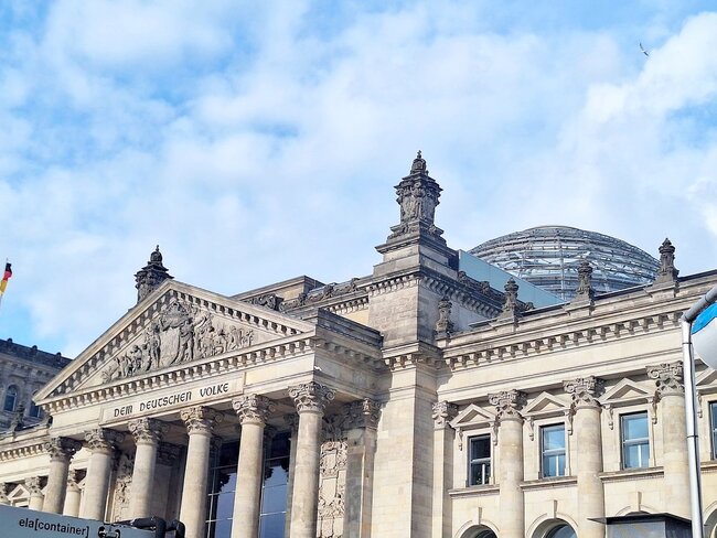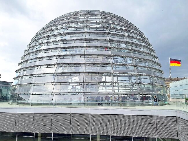 Deszcz cały czas wisiał w powietrzu i nie kazał długo na siebie czekać. Po krótkiej przerwie w galerii handlowej udaliśmy się do budynku Reichstagu. Z wielką bryłą niemieckiego parlamentu kontrastuje mały pomnik upamiętniających parlamentarzystów głównie partii lewicowych, którzy zginęli w obozach koncentracyjnych w czasach III Rzeszy.