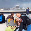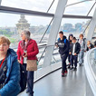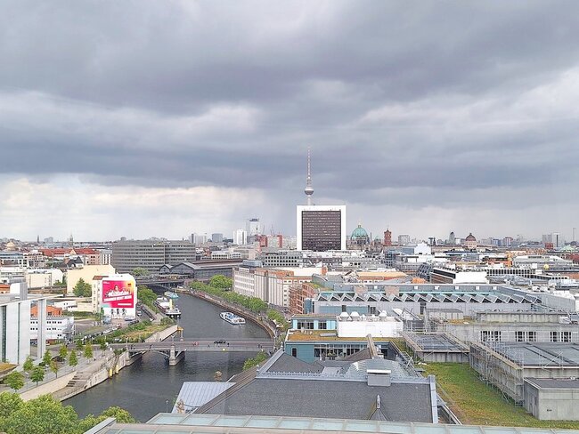 Po szczegółowej kontroli wjechaliśmy na kopułę Reichstagu i punkt widokowy wg projektu Normana Fostera. Oprócz widoku na Berlin mieliśmy również widok na nadciągającą burzę, która zatrzymała nas na pół godziny pod filarami Reichstagu. Była ulewa i grad sporych rozmiarów, który stał się również obiektem fotograficznym. Na szczęście nikt nie zmókł. Szybkie zdjęcie pod Bramą Brandenburską i metrem dotarliśmy na Alexanderplatz na kolejny czas wolny. Tutaj już było ciepło i słonecznie. Na szczęście tak już zostało do końca wycieczki.