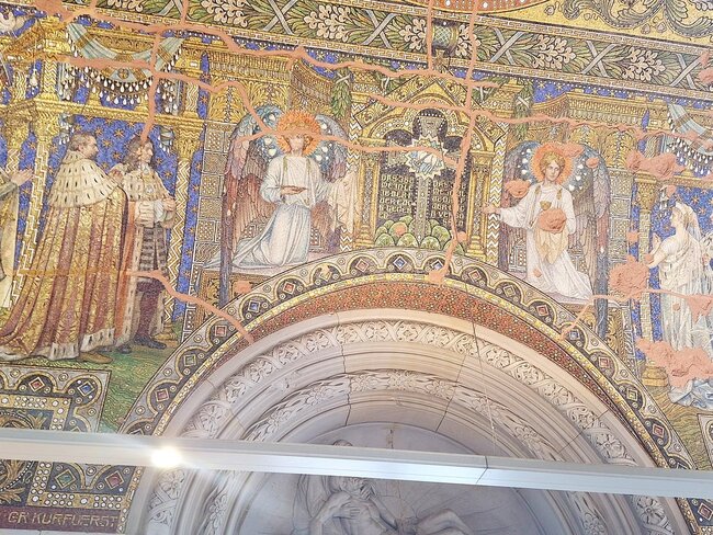 Pobyt w stolicy Niemiec rozpoczęliśmy od Ku’ dammu, gdzie odwiedziliśmy Kościół Pamięci Cesarza Wilhelma z zachowaną starą częścią z przepięknymi mozaikami przedstawiającymi motywy biblijne, dzieje Prus i Rzeszy Niemieckiej w tym rodu Hohenzollernów. W nowej części, do której światło słoneczne wpada przez niebieskie okienka zobaczyliśmy kopię obrazu Stalingradzka Madonna autorstwa niemieckiego pastora Kurta Reubera, który w noc wigilijną 1942 roku na mapie wojskowej namalował obraz Matki Bożej z Dzieciątkiem.