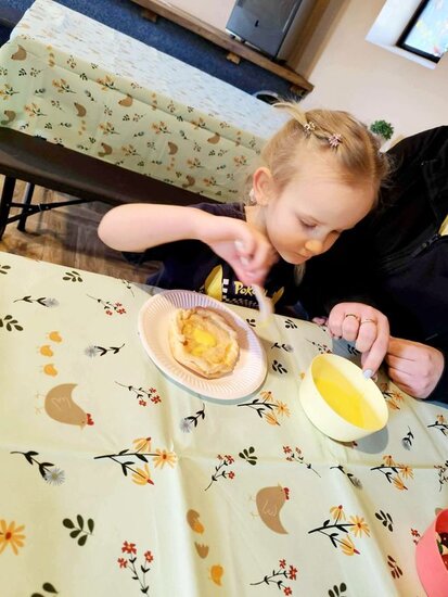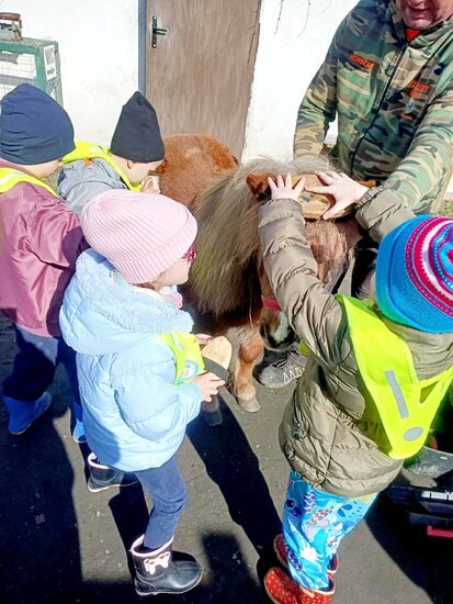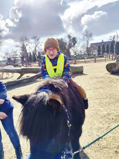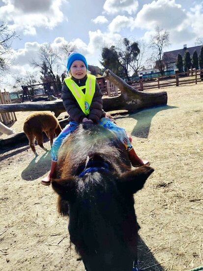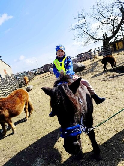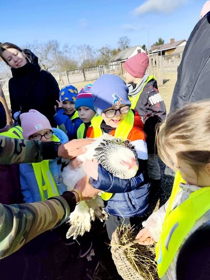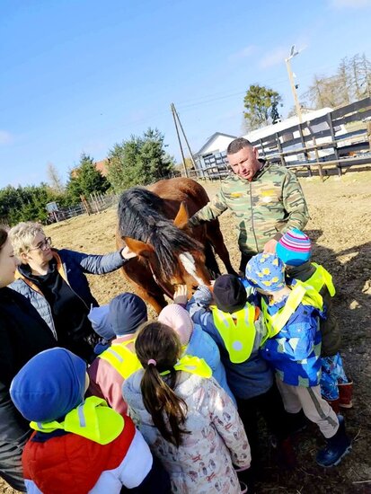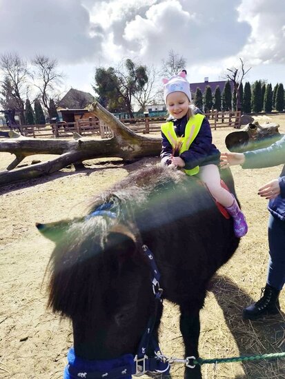 Nie zabrakło słodkiego poczęstunku oraz konnej przejażdżki, a piękna pogoda pozwoliła na szukanie wielkanocnego koszyczka i swobodne zabawy na świeżym powietrzu. Na zakończenie dzieci wręczyły kartkę z podziękowaniami i w dobrych humorach wróciły do przedszkola.
