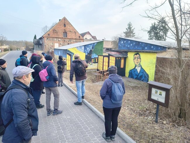 Przez całą trasę towarzyszył nam Waldemar Baszak, prezes fundacji „Twórcze Brzózki”, który oprowadził nas po miejscowości i podzielił się jej historią oraz ciekawostkami. Po zakończonej wędrówce zaprosił nas do siebie na kawę i pyszny sernik – za gościnność serdecznie dziękujemy!
