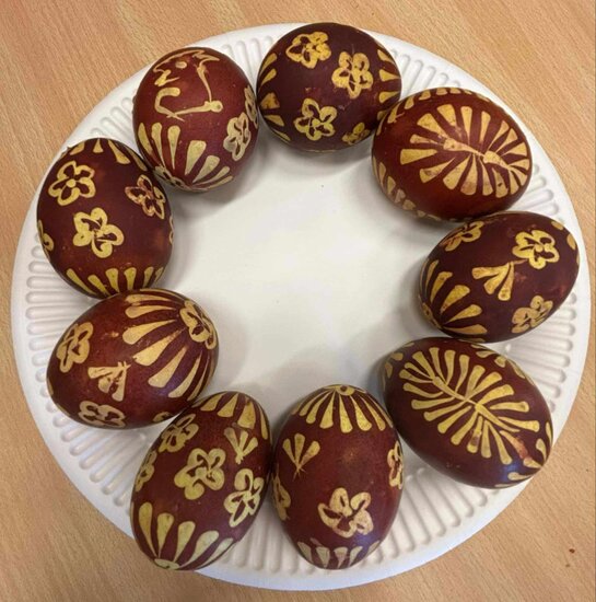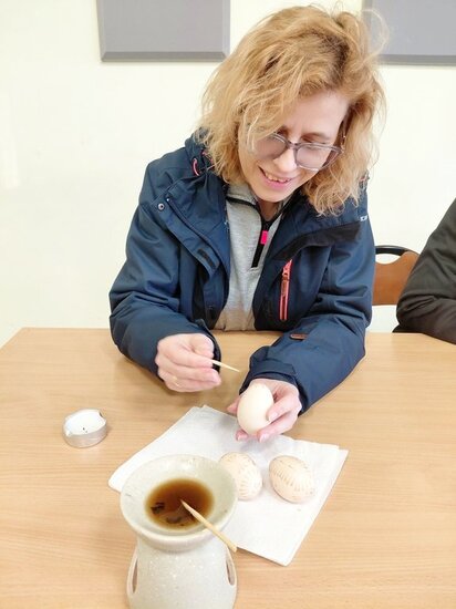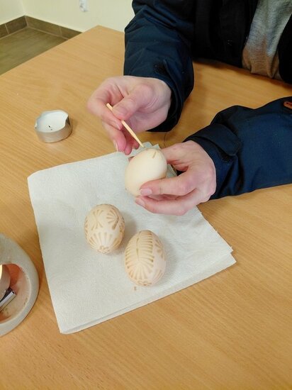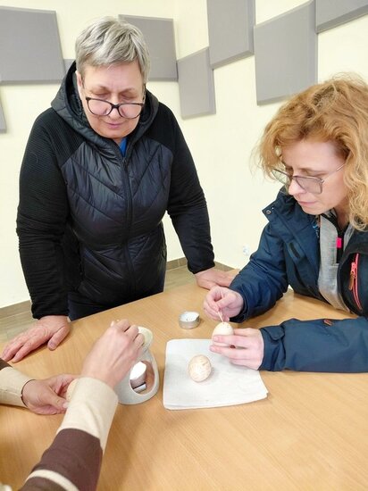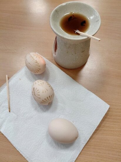 Spróbowałyśmy również swoich sił w tradycyjnym zdobieniu jajek woskiem pszczelim. Panie wykazały się niezwykłą kreatywnością i pomysłowością.