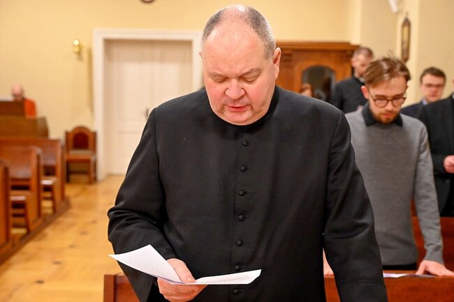 Wieczorne Nieszpory odbyły się z udziałem członków Komisji Przygotowawczej, która po odczytaniu dokumentu przez biskupa, została rozwiązana. – Z wielkim wzruszeniem spoglądałem dziś na dekret powołujący nas do pracy nad synodem i na jego datę – 19 grudnia 2024 roku. Trudno uwierzyć, że od tego momentu minęło tak niewiele czasu, bo patrząc na ogrom wykonanej pracy, można odnieść wrażenie, że trwała ona znacznie dłużej. Był to jednak czas szczególny – darowany nam, byśmy mogli wspólnie podjąć to dzieło. W imieniu nas wszystkich pragnę podziękować za zaufanie i możliwość uczestniczenia w tej misji – powiedział ks. kanonik Tomasz Cyl, zwracając się do biskupa.