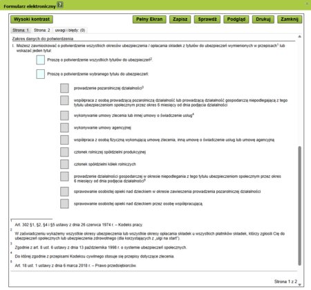 • w dokumentach zgłoszeniowych i rozliczeniowych występują błędy i  wydanie zaświadczenia o opłaconych składkach na ubezpieczenia emerytalne,  rentowe lub wypadkowe z tytułu prowadzonej działalności gospodarczej jest niemożliwe,